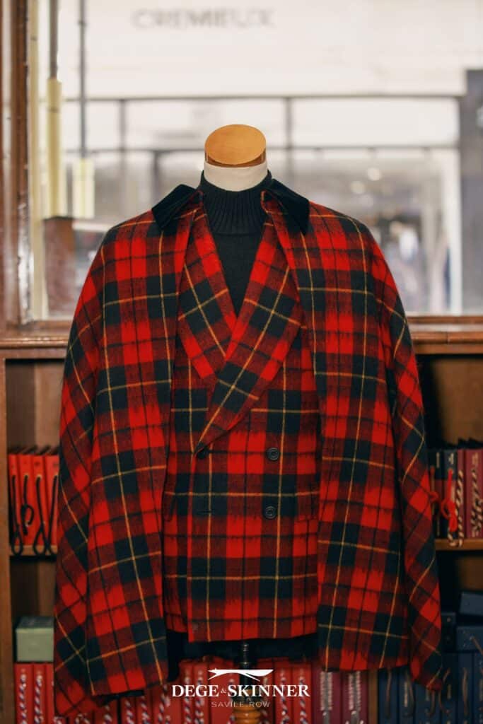 Seen here with his award, Jon's Golden Shears entry was a striking red and black ensemble, reflecting the bold spirit and artistry that’s possible with bespoke tailoring. His choice of such an unusually long pile, strongly checked cloth to grab the judges attention when paraded down the catwalk. The design itself matching the cloth’s boldness, yet giving a comfortable, relaxed and flowing ease of wear, catwalk or glamorous night out.