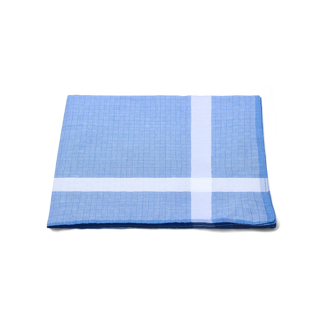 Mid-blue 100% cotton basketweave handkerchief with hand-rolled edges.