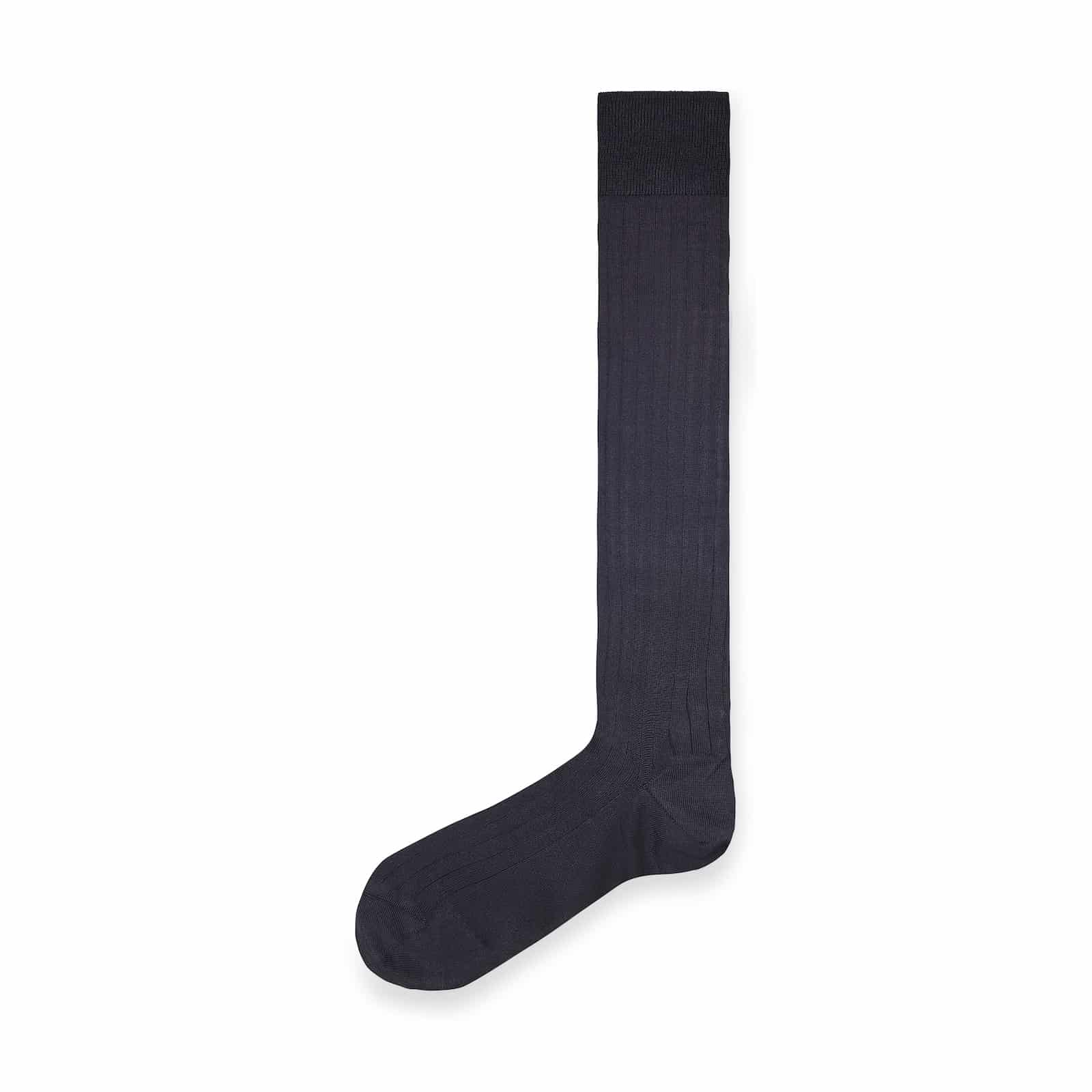 Over-calf, black silk socks.