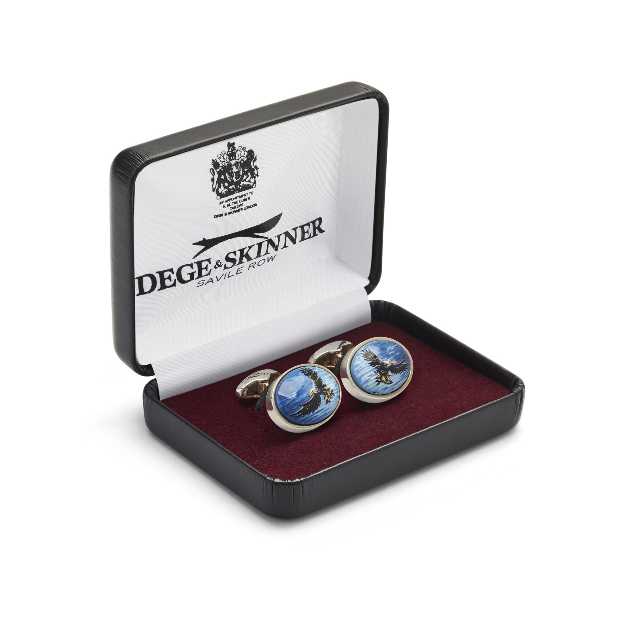 Sterling silver cufflinks with hand painted eagles on enamel centre.
