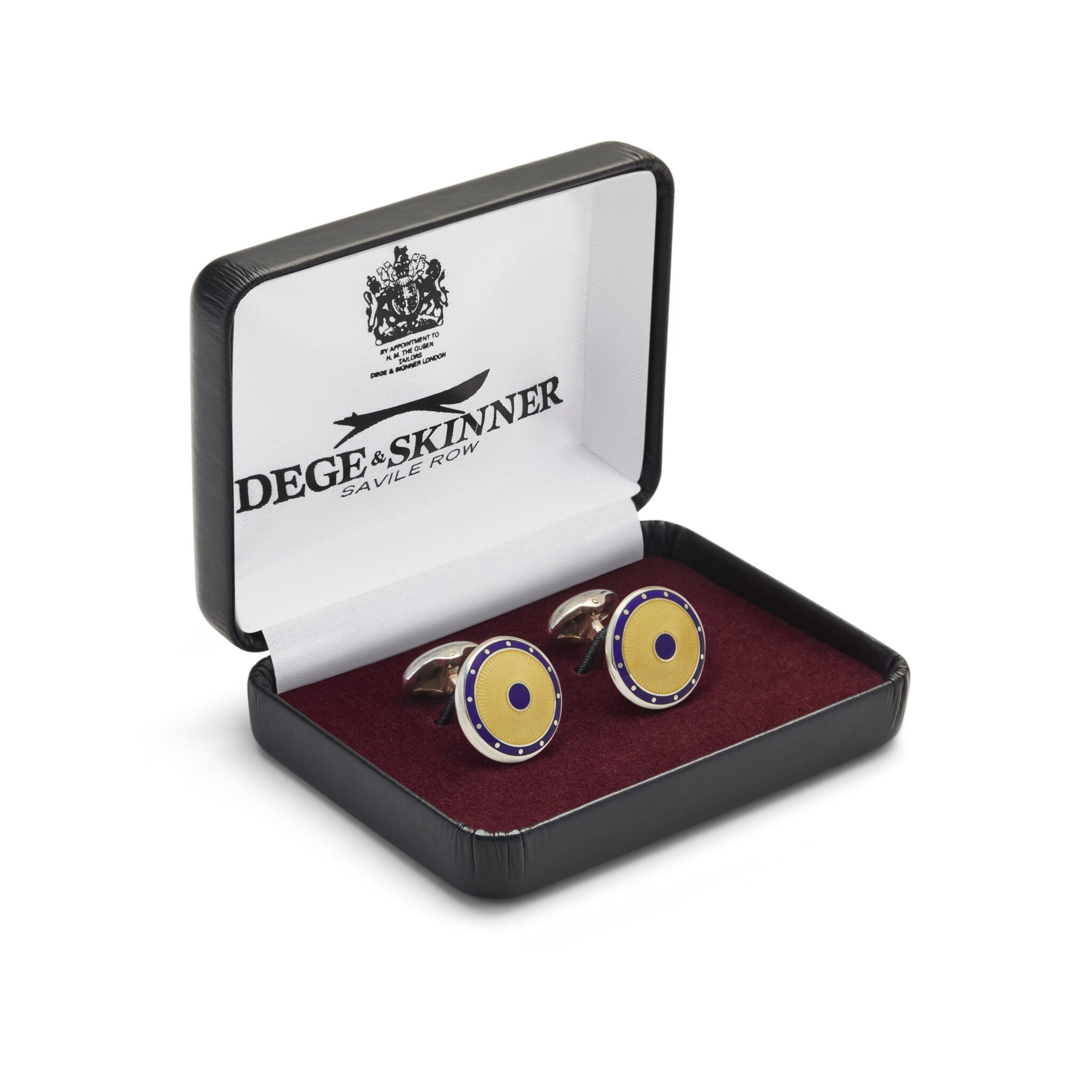 Sterling silver cufflinks with a navy and yellow two tone enamel.
